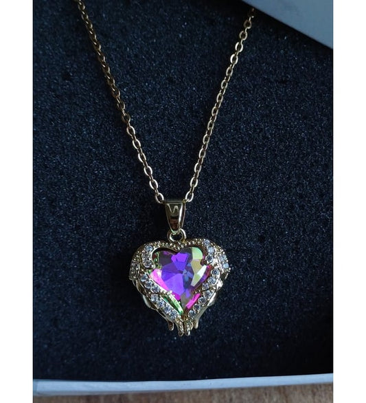 Çelik Gold Renk Zincir Zirkon Taşlı Kalp Model Kadın Kolye