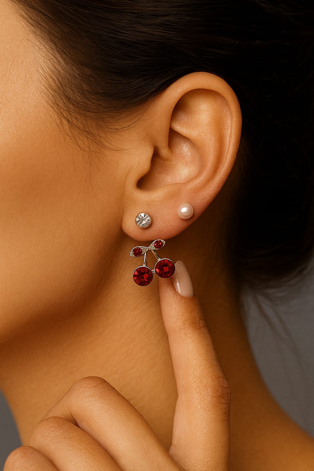 Neşeyi ve zarafeti kulaklarınızda taşıyın! Parlayan pırlanta taşlarla süslenmiş kiraz detayı, hem günlük kombinlerinize hem de özel anlarınıza tatlı ve göz alıcı bir dokunuş katıyor.