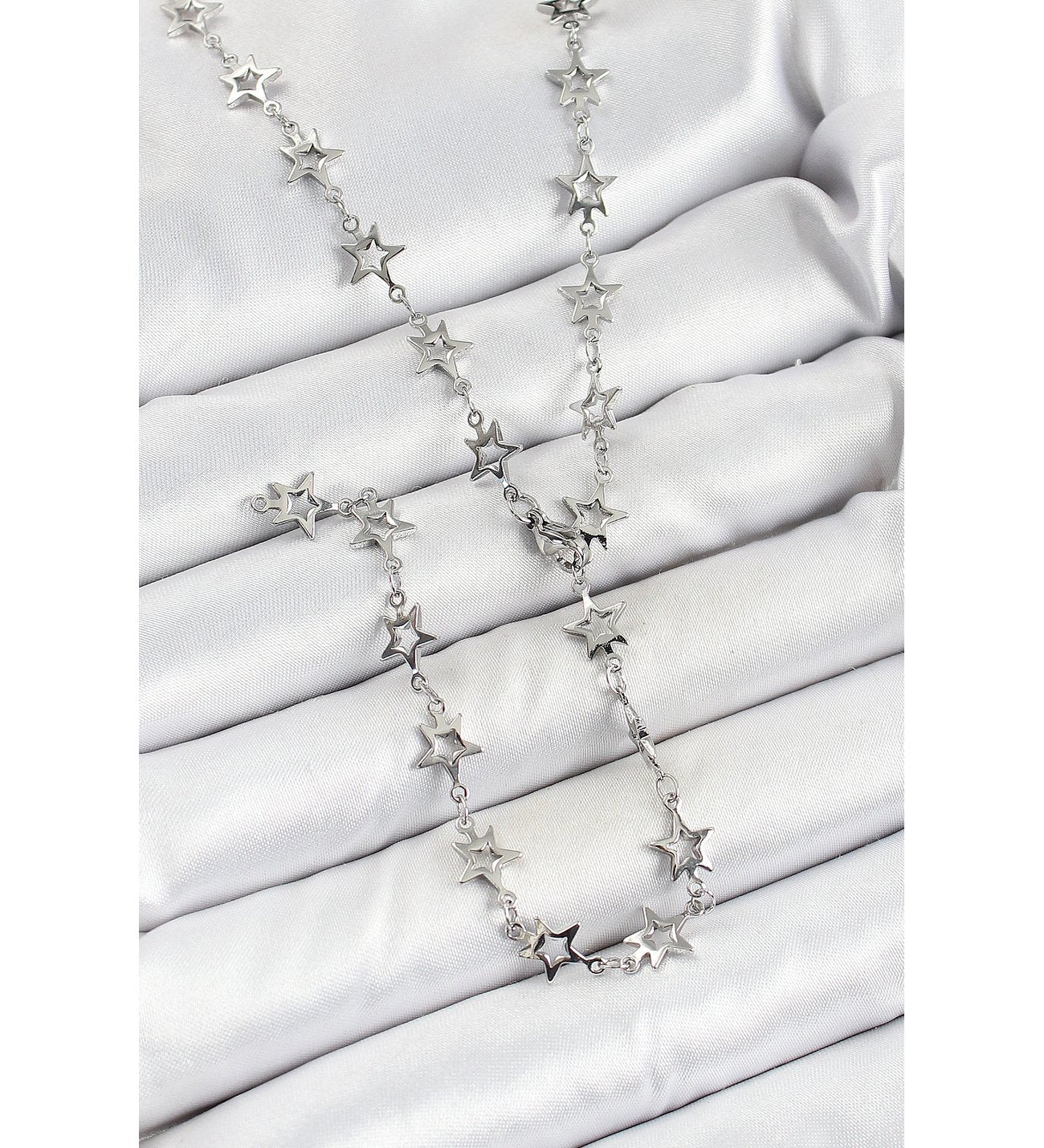 Pirinç Gümüş Renk Yıldızlı Kadın Y Kolye