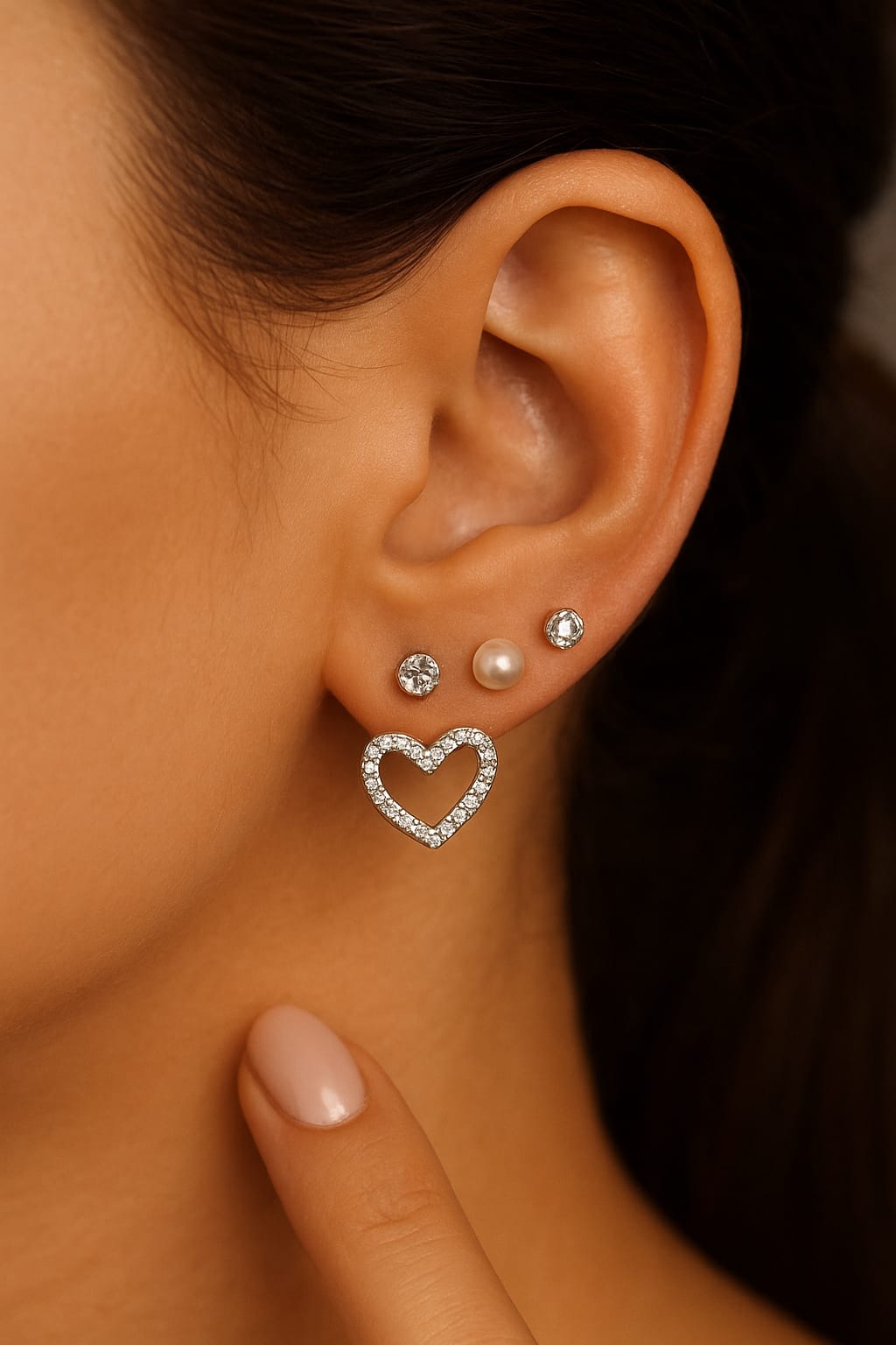 Aşkı ve zarafeti kulaklarınızda taşıyın! Parlayan pırlanta taşlarla süslenmiş kalp figürü, hem günlük şıklığınızı tamamlar hem de özel anlarda göz alıcı bir detay sunar.